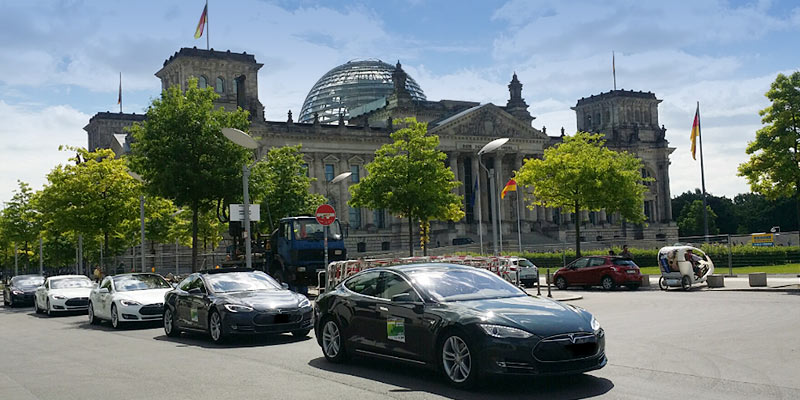 Am 15./16. Juni 2015 fand in Berlin die Konferenz „Elektromobilität“ statt, auf der sich Politik, Wirtschaft und Interessenvertreter zum aktuellen Stand der Entwicklung ausgetauscht haben. Unter Beteiligung des TFF e.V. haben über hundert Model S aus Deutschland und den umliegenden europäischen Ländern eine Sternfahrt organisiert, um den Teilnehmern der Konferenz zu zeigen, dass die E-Mobilität keine Theorie, sondern gelebte Praxis ist. Hierbei wurde ein Brief an das Kanzleramt übergeben, in dem wir auf die aktuellen Hindernisse beim Ausbau der E-Mobilität in Deutschland hingewiesen haben.